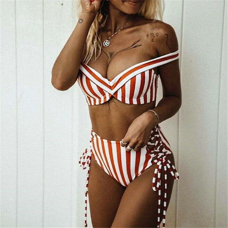 0 Response to " women high waist stripe bikini set two piece swimsuit biquini swimwear bathing swimming suit maillo"